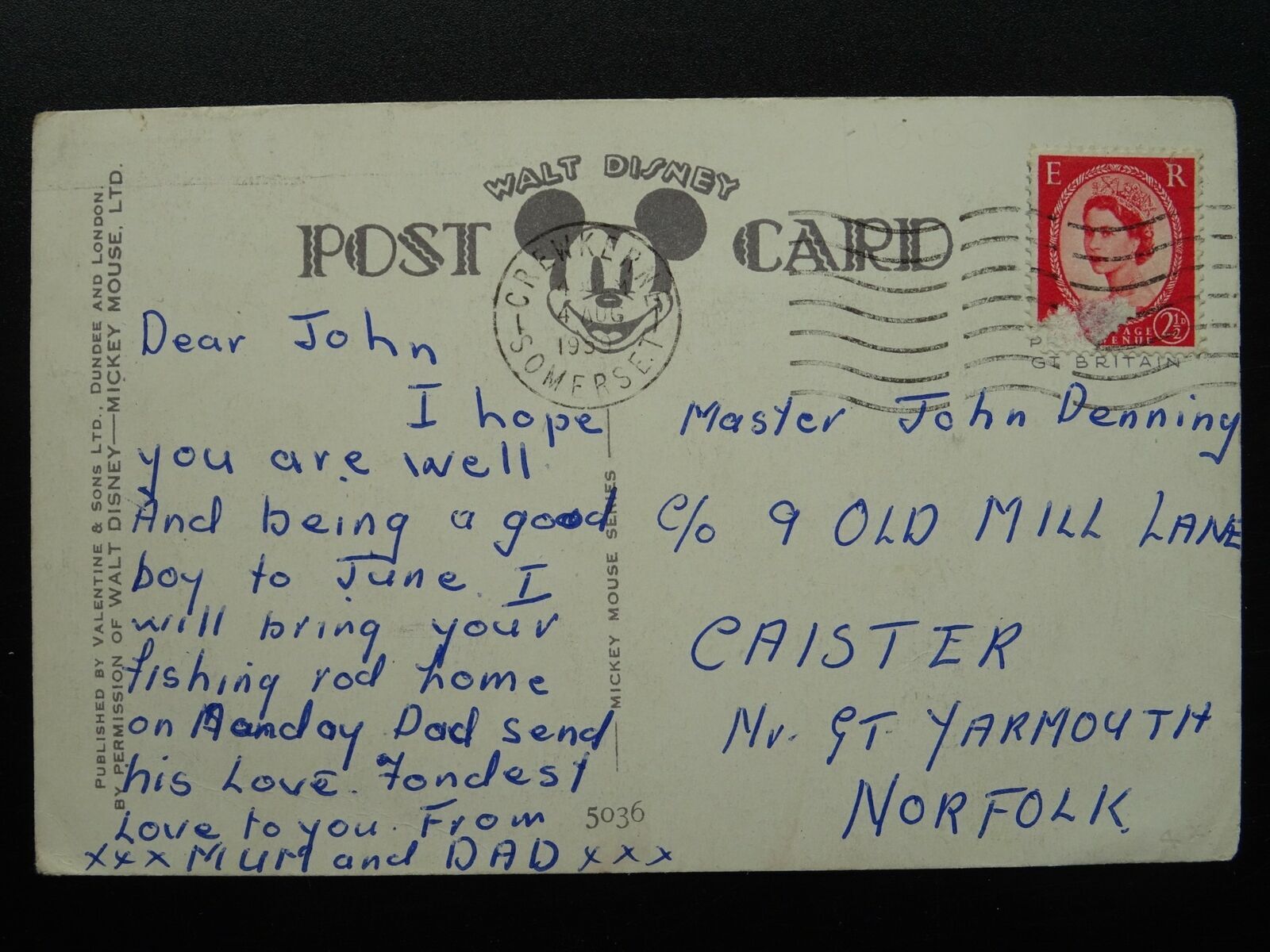 Walt Disney MICKEY MOUSE & GRIZZLY BEAR 'A Narrow Squek' c1940s Postcard Walt Disney MICKEY MOUSE & GRIZZLY BEAR 'A Narrow Squek' c1940s Postcard Postcard Details Additional Information - Postcard Condition (VG) - Good Good / corner bumpsPostally used - Postcard Details - Please see detail on the photographic image or contact us for details. Abbreviations: (UB) Undivided Back / (RP) Real Photograph Postcard / (PM) Postmark Interest / (CDS) Cancellation Date Stamp / (SQC) Squared Circle / (DP) Duplex PostmarkPTP Reference - 060521 Postcards WelcomeWelcome to our store. At Past Time Postcards we stock a comprehensive range of British antique and vintage topographical postcards, cigarette cards, rare antique prints and other antique collectables.We aim to make your shopping experience enjoyable and stress free. We list our postcards topographically and by subject matter to make it easier for you to locate the items that interest you. Feel free to browse and explore at your leisure, however if you require assistance locating items or have a specific request please don't hesitate to contact us.Combined Postage We will always combine postage when you purchase multiple items. Please make your multiple purchases by using your Hip BASKET where postage will be combined automatically.Postage & PackagingPostage rates are calculated to include postage and packaging. All Full Sets of Cigarette or Trade Cards are posted 1st Class and protected with a plastic sleeves in a BOARD BACKED ENVELOPE & FULL SET HAVE ADDED STIFFNER BOARD for added security and protection. Payment MethodsOur preferred method of payment is through PayPal for all purchases.UK CUSTOMERS can make payment by PayPal, Personal Cheque or Postal Order. PLEASE NOTE: Credit cards included in PayPal payment method Inc. Visa, MasterCard, American Express, Discover. FOR CUSTOMERS OUTSIDE THE UK: we can only accept PayPal as method of payment100% SatisfactionIf in the unlikely event you are unhappy with your item you have purchased on the basis that the postcard was incorrectly described or graded we do offer a complete refund less the cost of postage and packaging once the item is returned to us.Condition & Grading Information(M) Mint – Like new, almost perfect(EX) Excellent – No obvious flaws, sharp corners, clean and if postally used the writing does not detract from appearance.(VG) Very Good - Minor defects such as album marks, signs of age and handling is acceptable that do not detract from appearance.(G) Good – Noticeable defects, handling and wear apparent. Minor creasing or minor postal damage not detrimental to image.(F) Fair – Obvious creasing, staining, small tears or damp damage evident. Significant edge or corner damage.(P) Poor – Incomplete or image seriously affectedFinally if you have any specific requests or questions we are always very pleased to offer support and assist you with your collecting needs.Kind regardsMark - Past Time Postcards Listing and template services provided by inkFrog