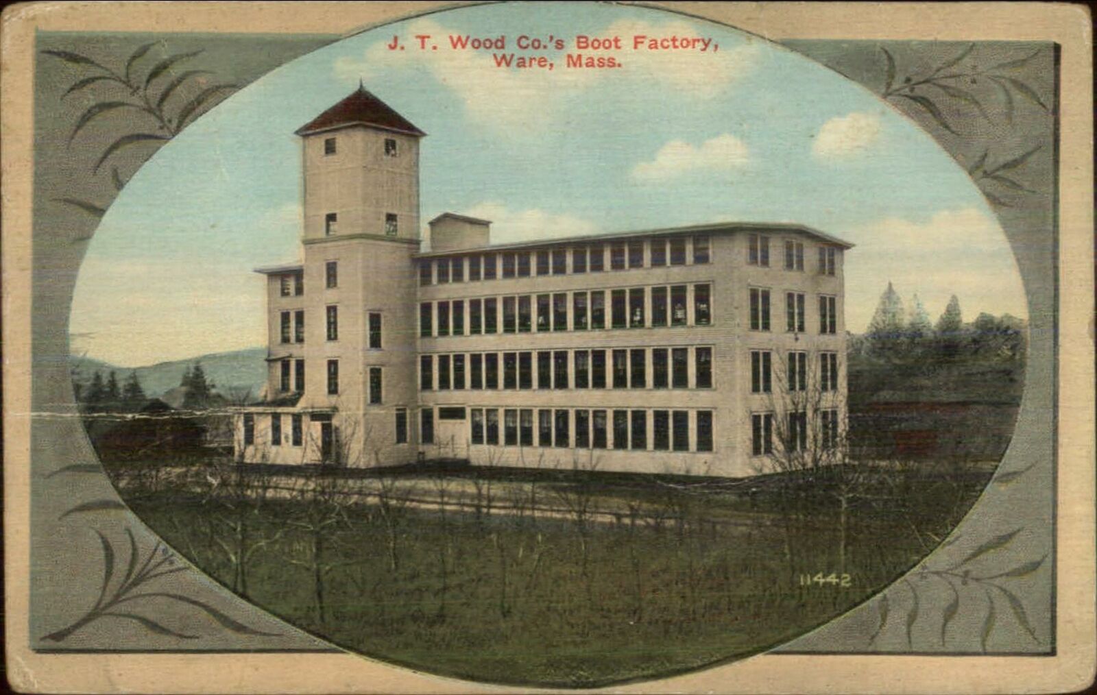 Ware MA JT Wood Co Boot Factory c1910 Postcard