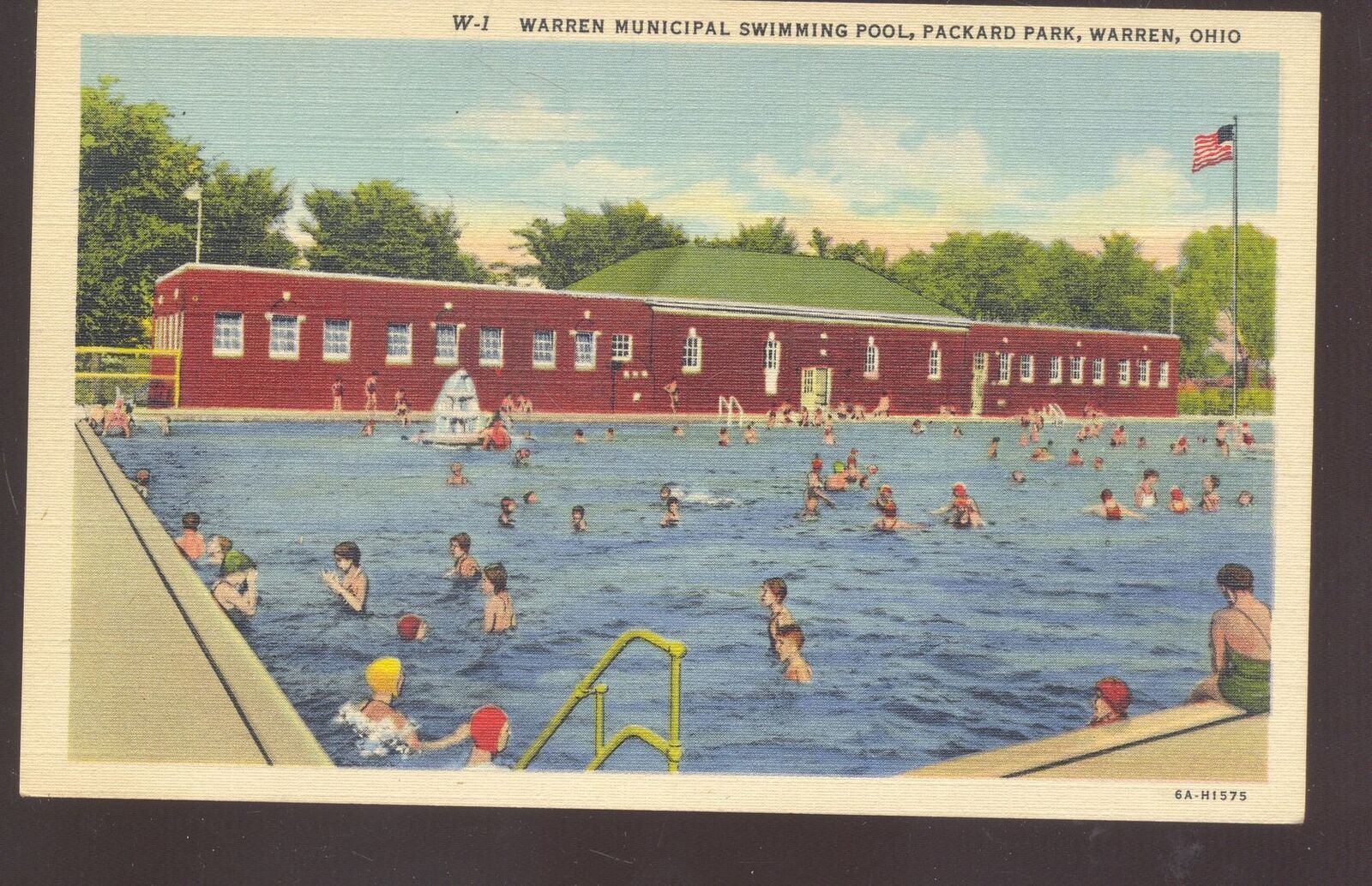 WARREN OHIO PACKARD PARK SWIMMING POOL VINTAGE POSTCARD