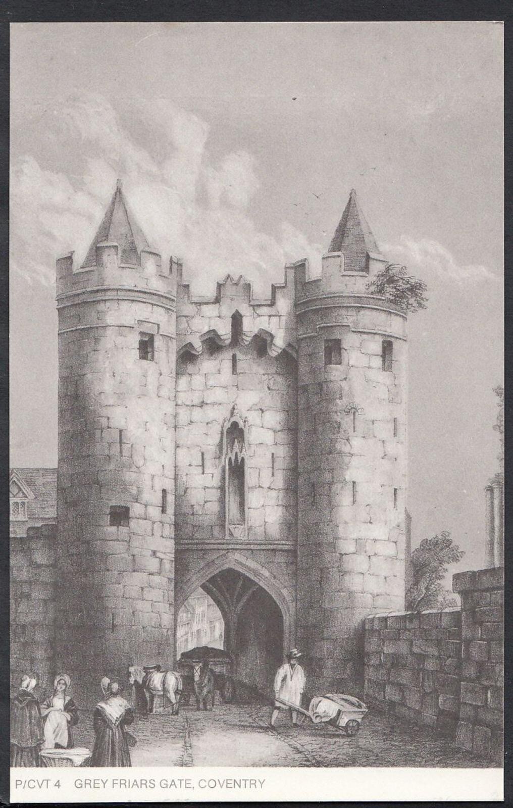 Postcard Description: Warwickshire Postcard - Grey Friars Gate, Coventry. A relatively modern reproduction postcard.Defect(s): Slight edge wear