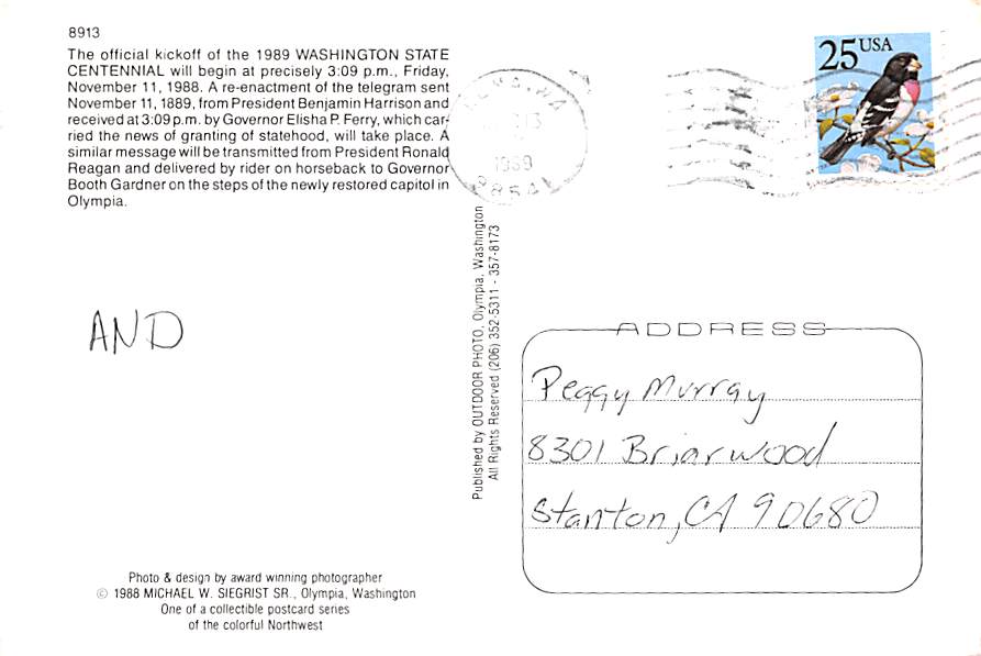 Washington Centennial - Washington Grade: 2 Category: Continental Size Postcard, Approx 4 in x 6 in (10 cm x 15.25 cm) Product Size: Continental size: 4X6 inches (10.5 cm x 15 cm) Grading Scale: Grade 1 = Perf ... Read More