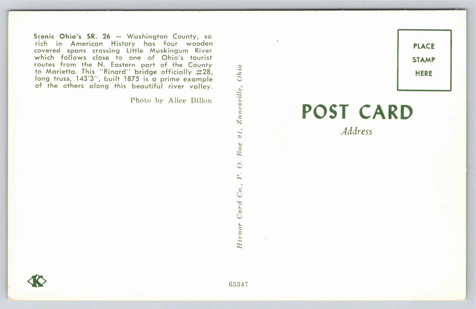 Washington County Ohio~Bridges~Wooden Covered~Vintage Postcard