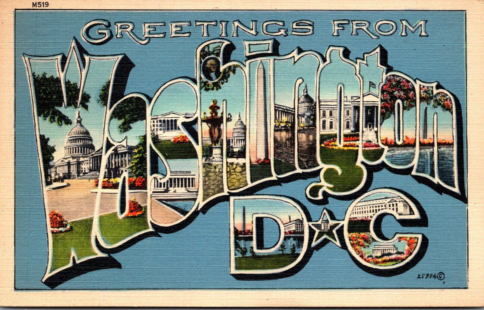 Washington D C Greetings Large Letter Linen 1939