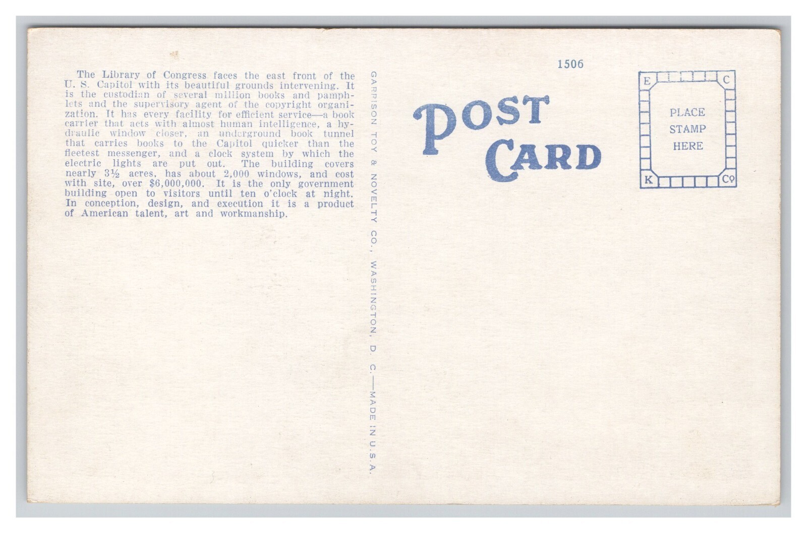 Condition: Unmailed, Showing Wear From Handling. Reasonable Offers Always Considered. Washington D. C. Library Of Congress Postcard