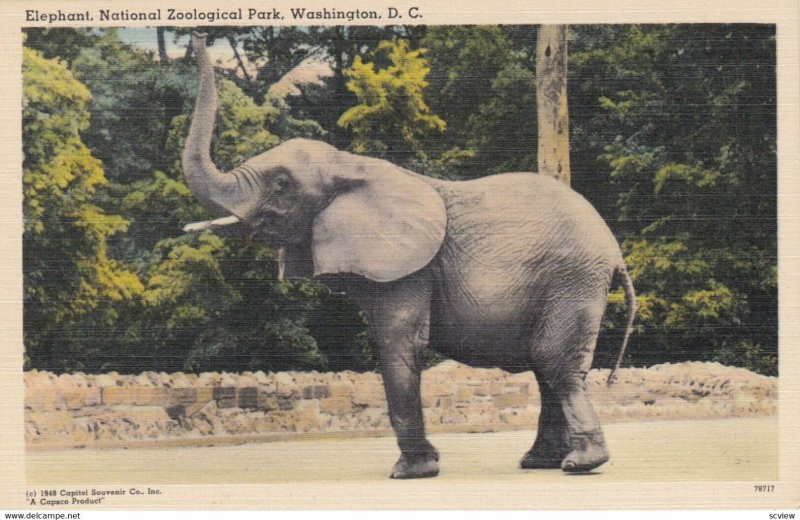 WASHINGTON DC , 1930-40s ; Zoo ; Elephant :: Postcard, 3.5" by 5.5", Linen