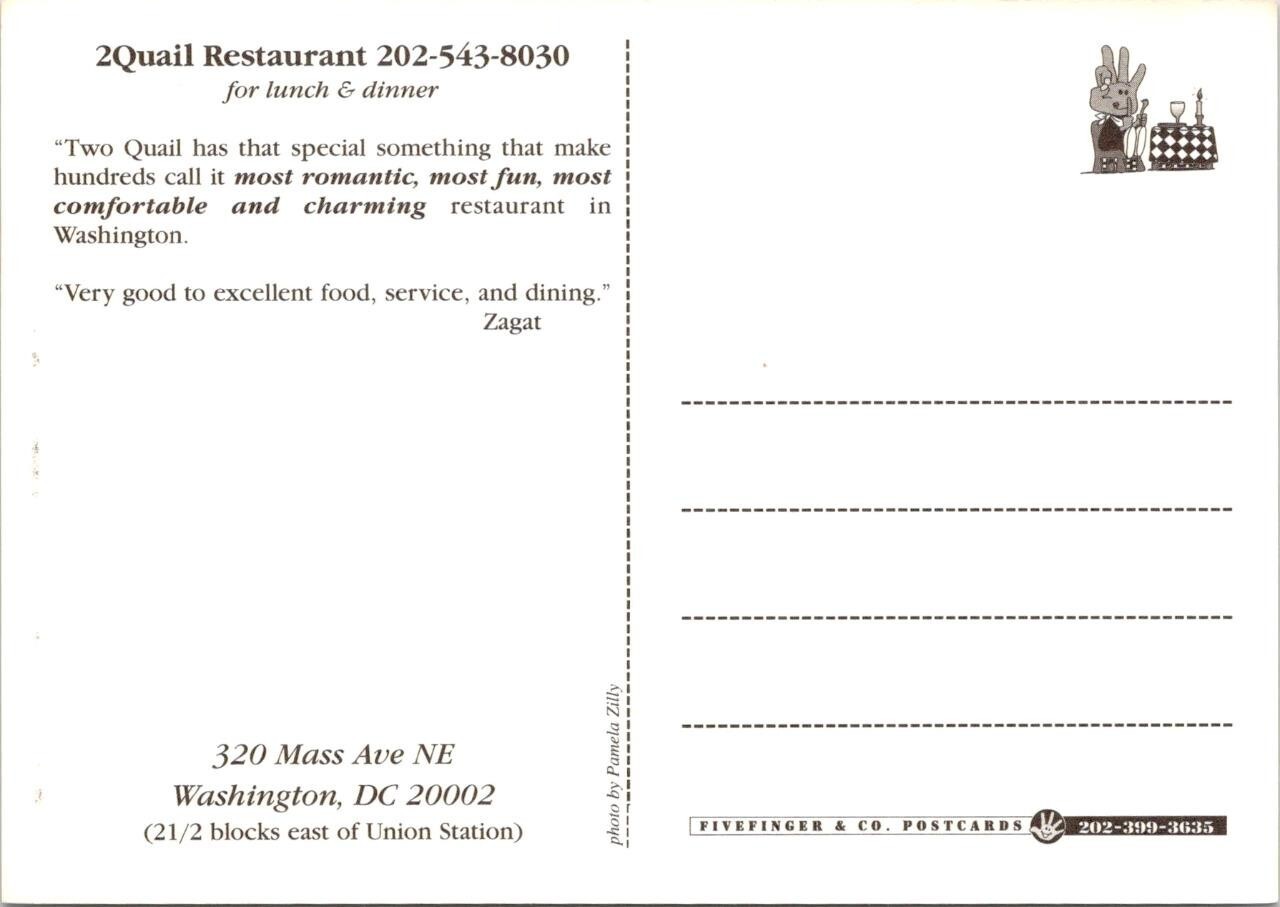 Washington, DC ~ 2QUAIL RESTAURANT Interior View 4X6 Advertising Postcard