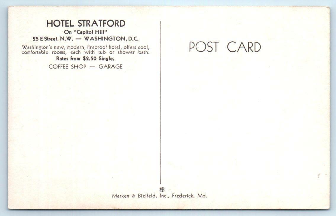 WASHINGTON D.C. ~ Capitol Hill HOTEL STRATFORD 25 E. Street Roadside Postcard