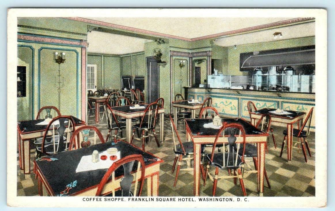 WASHINGTON, D.C. ~ Coffee Shoppe FRANKLIN SQUARE HOTEL c1930s Roadside Postcard
