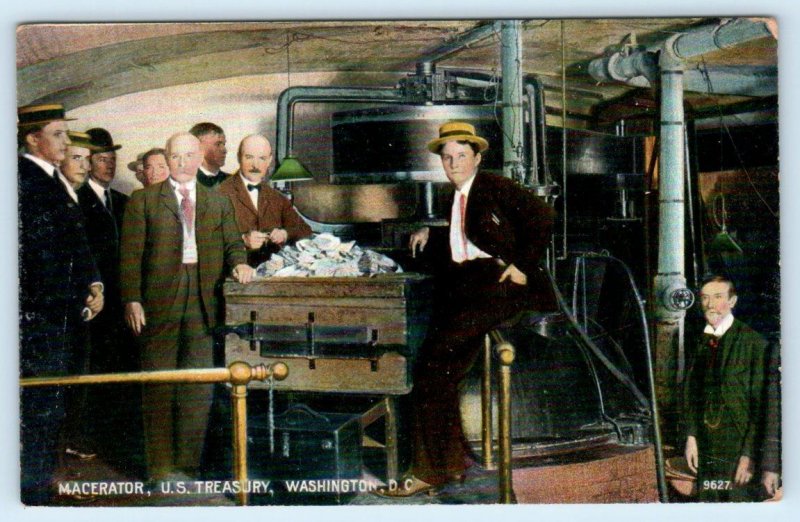 WASHINGTON D.C. ~ Macerator U.S. TREASURY Destroying Currency c1910s Postcard