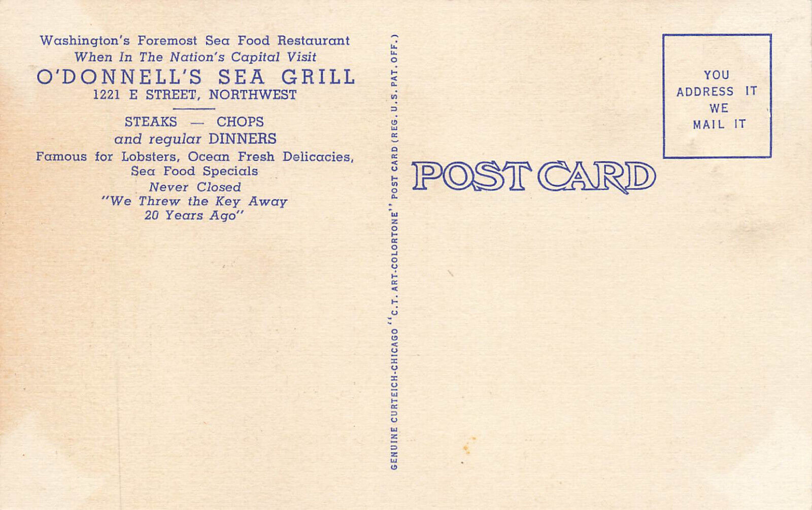 Washington DC O'Donnell's Sea Grill Multi-Views Linen Postcard.If you buy more than one item 'buy it now' Please use the 'add to basket' function as this will activate the combined shipping rate.For More Great Postcards, Trade Cards, Covers, etc. Visit our Hip Store: popcornjohn.com