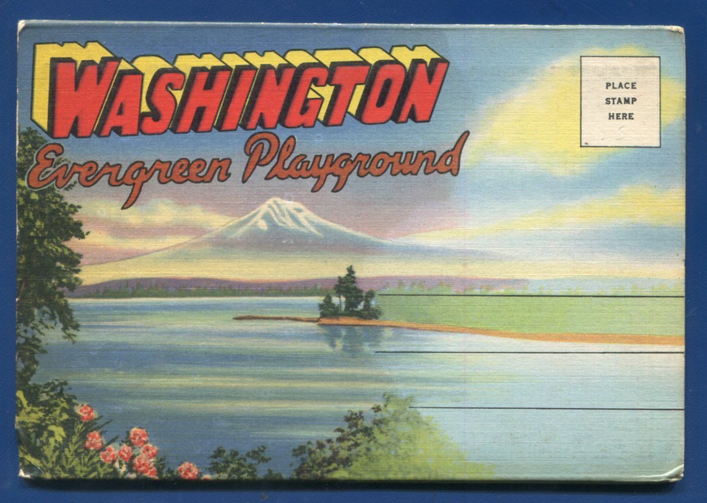 Washington Evergreen Playground Mt Rainier Baker Lake Crescent postcard folder 2