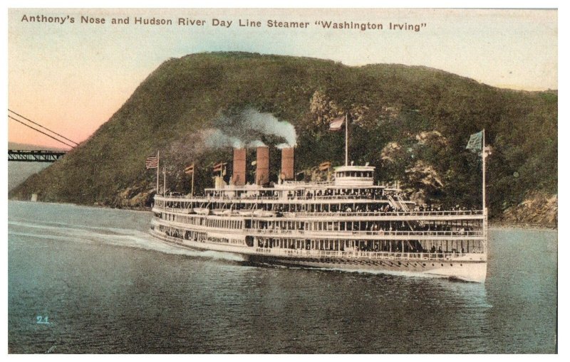 Washington Irving Anthony Nose & Hudson River Steamer Postcard