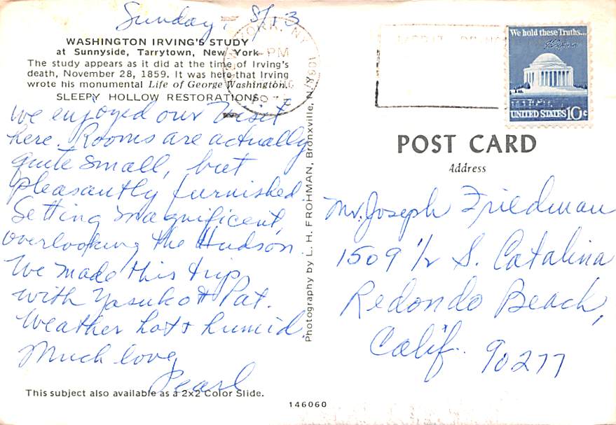 Washington Irving's Study - Tarrytown, New York Grade: 4 Category: Continental Size Postcard, Approx 4 in x 6 in (10 cm x 15.25 cm) Product Size: Continental size: 4X6 inches (10.5 cm x 15 cm) Grading Scale: G ... Read More