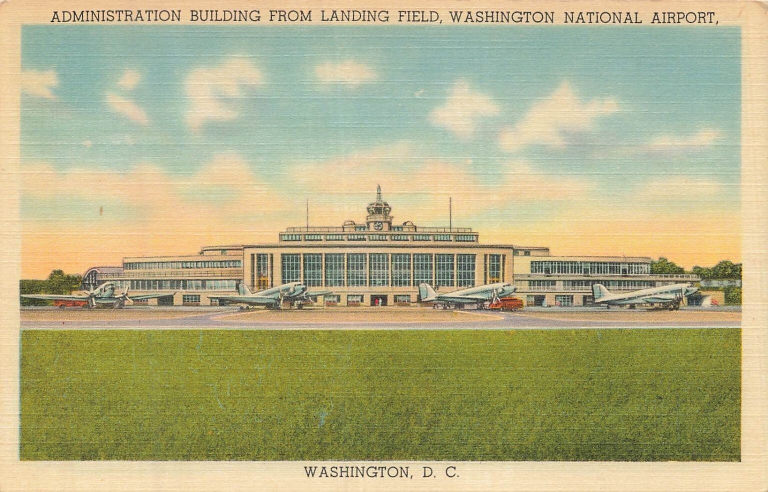 Washington National Airport Administration Building Linen Postcard