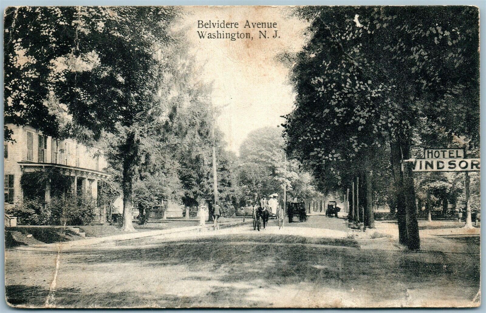 WASHINGTON NJ BELVIDERE AVE. 1914 ANTIQUE POSTCARD