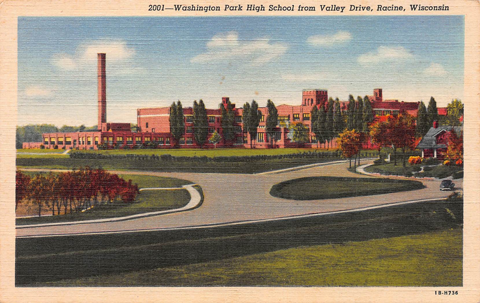 Washington Park High School from Valley Drive, Racine, Wisconsin, early postcard, unused, very fine. This card was published by E. A. Bishop, Racine, WI.