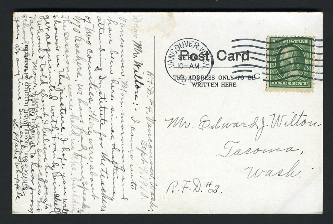 WASHINGTON POSTCARD: 1910, HIGH SCHOOL, VANCOUVER, WASHINGTON