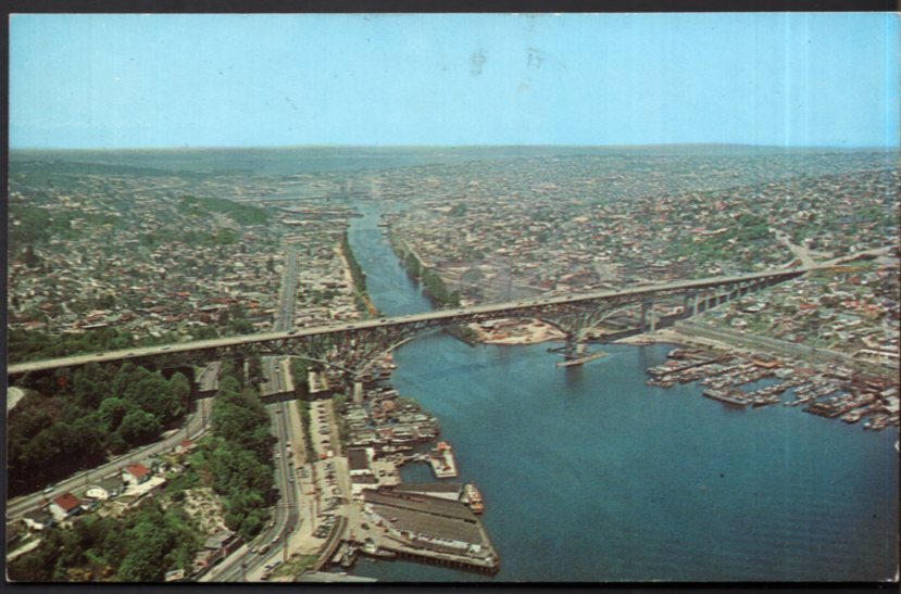 Washington SEATTLE Aerial View of Aurora Bridge Highway 99 - pm1965 - Chrome