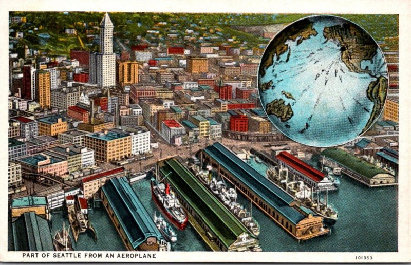 Washington Seattle Partial View Seen From An Aeroplane Curteich