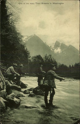 Washington Trout Stream Men Fishing c1910 Postcard