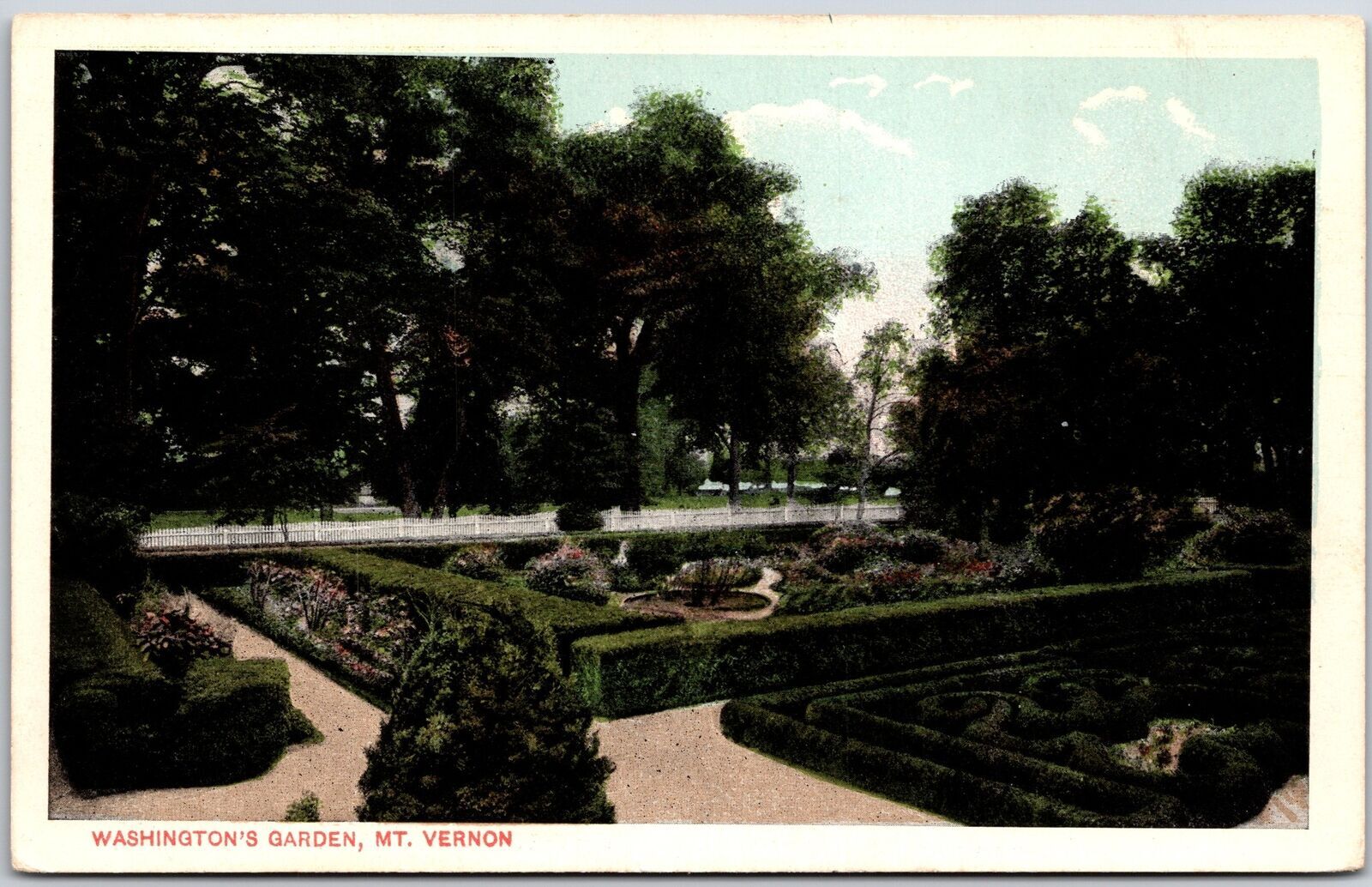Washington's Garden Mount Vernon Virginia Box-Bordered Bed Trees Shrubs Postcard