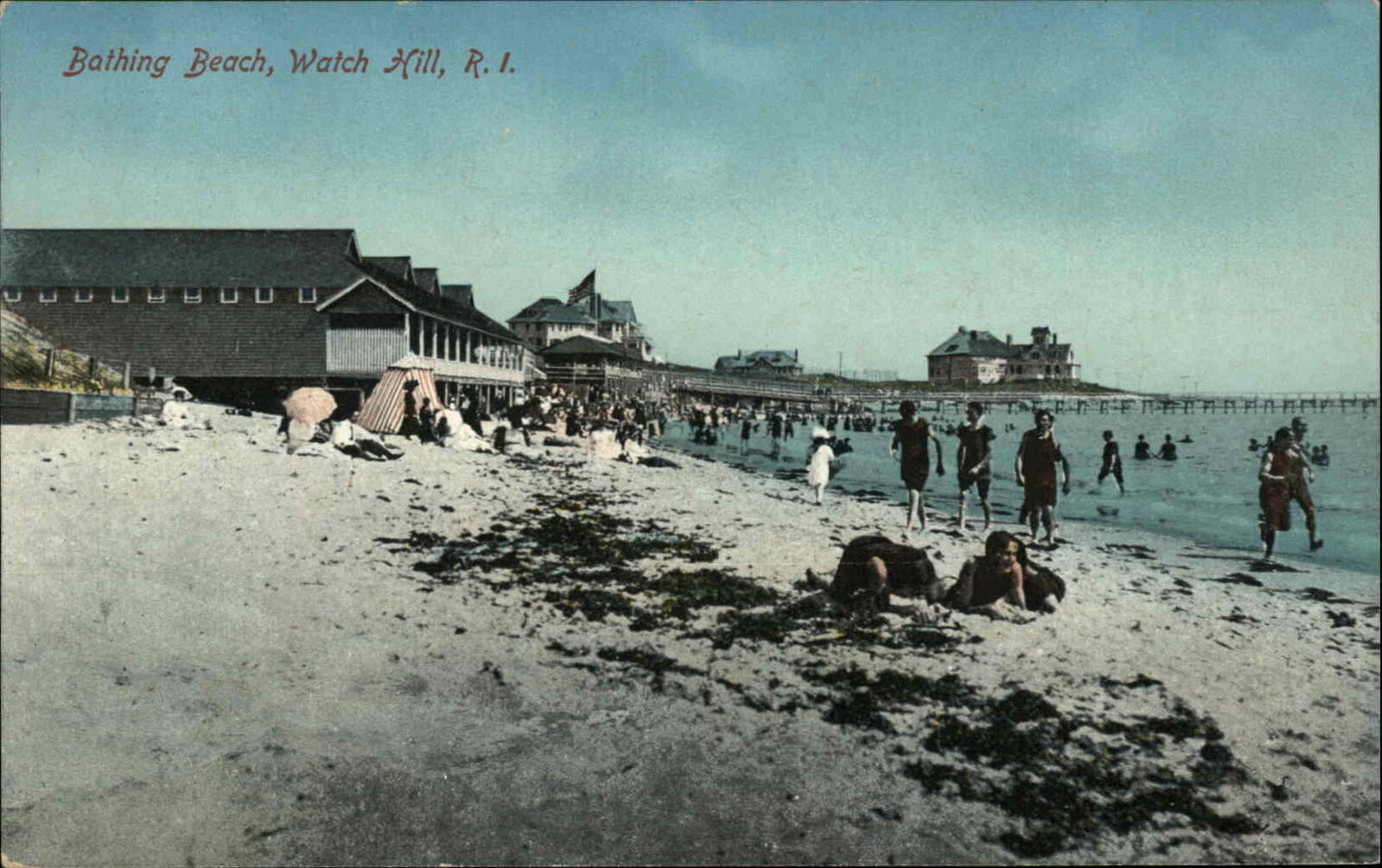 Watch Hill RI Bathing Beach Early Swimsuits c1910 Vintage Postcard