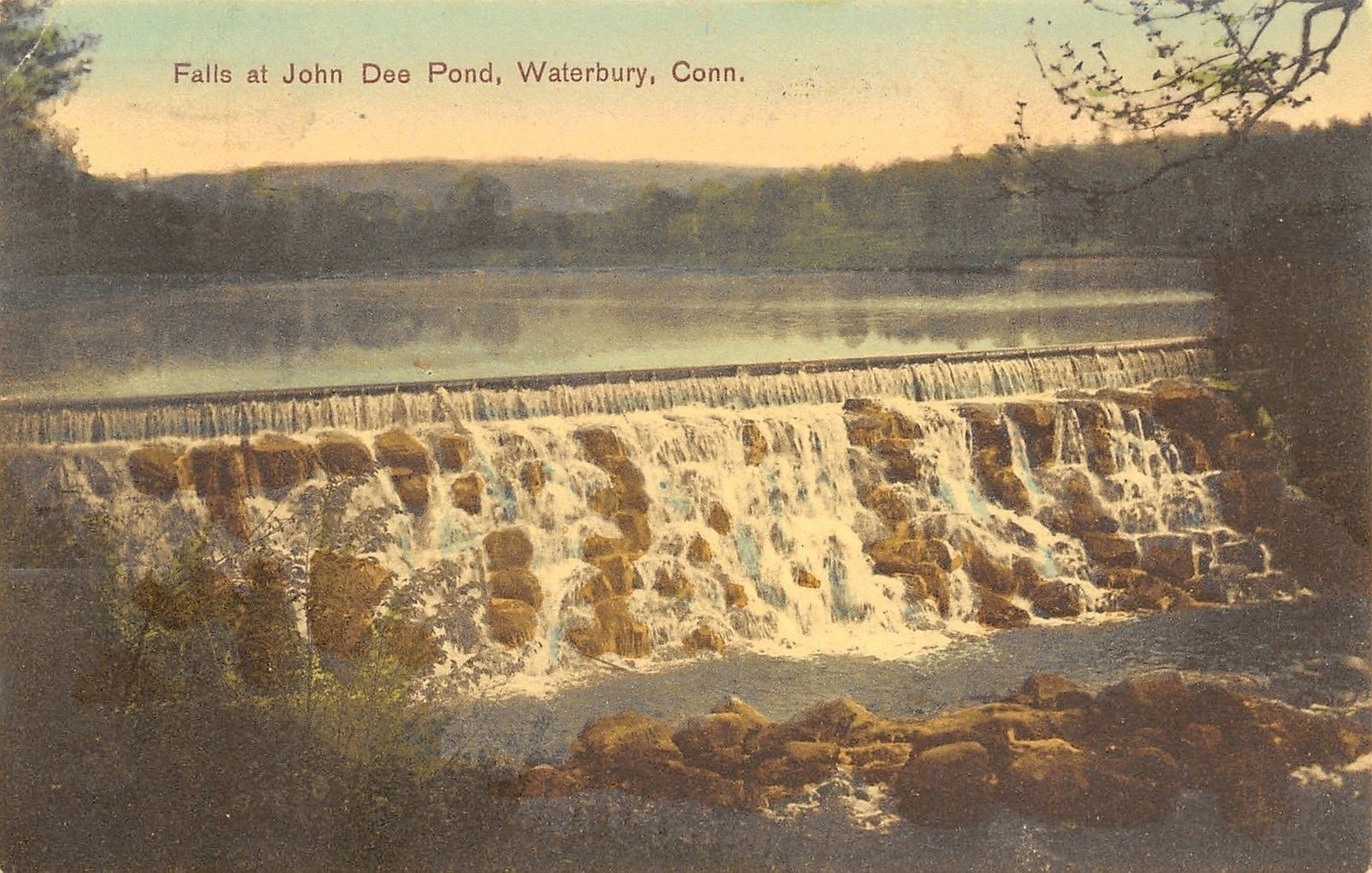 Waterbury Connecticut~John Dee Pond Falls~Handcolored~1908 Postcard