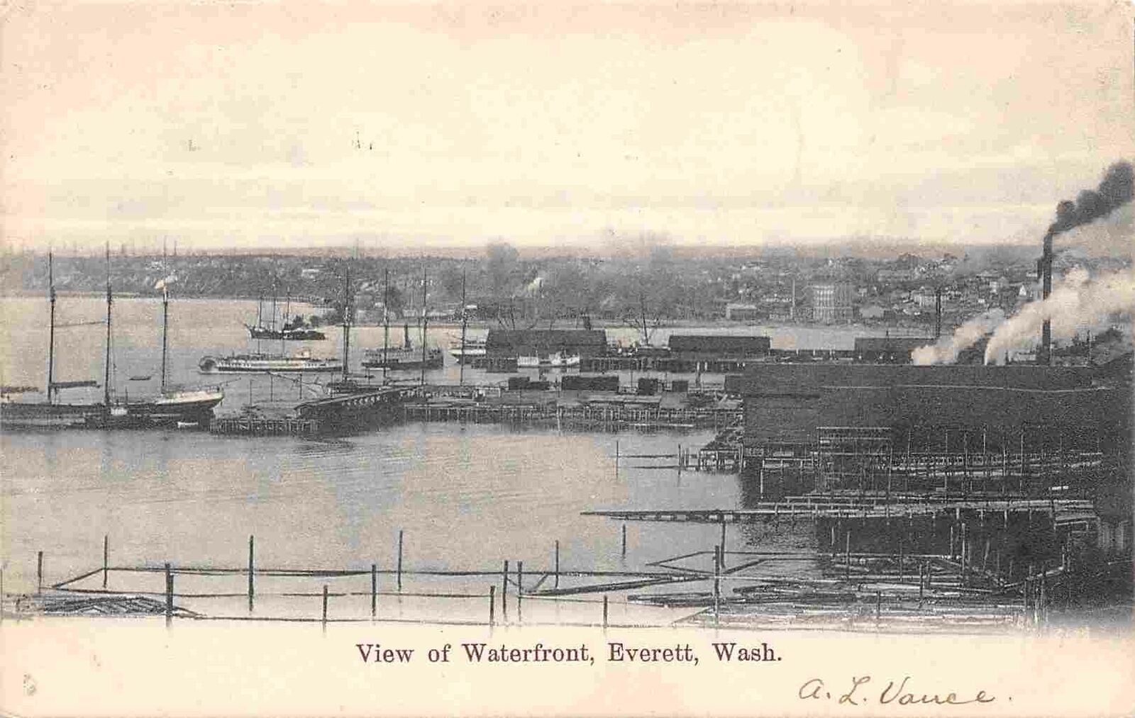 Waterfront Harbor Docks Everett Washington 1909 postcard