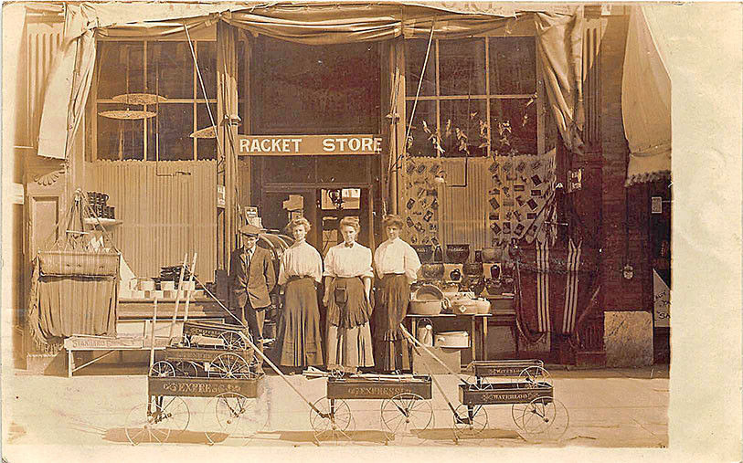 Waterloo IA Racket Store Toy Wagons RPPC Postcard in Window, in 1908. PLEASE SEE SCAN(S) FOR CONDITION. CLICK HERE FOR MORE POSTCARDS.