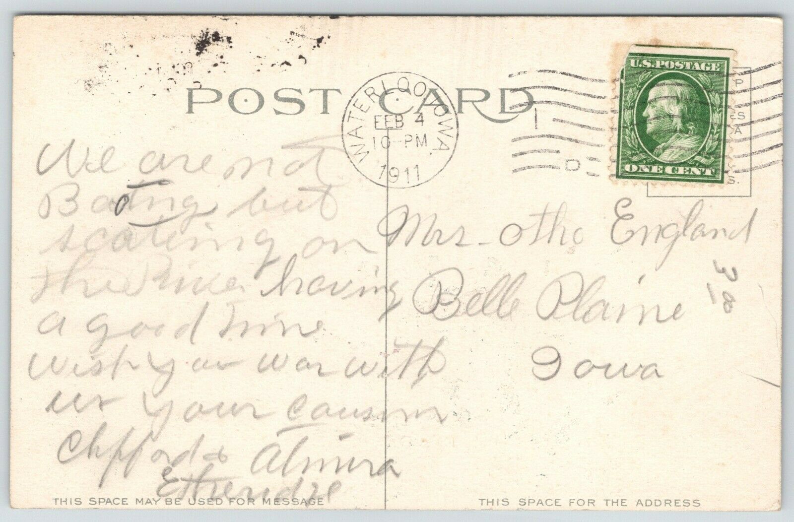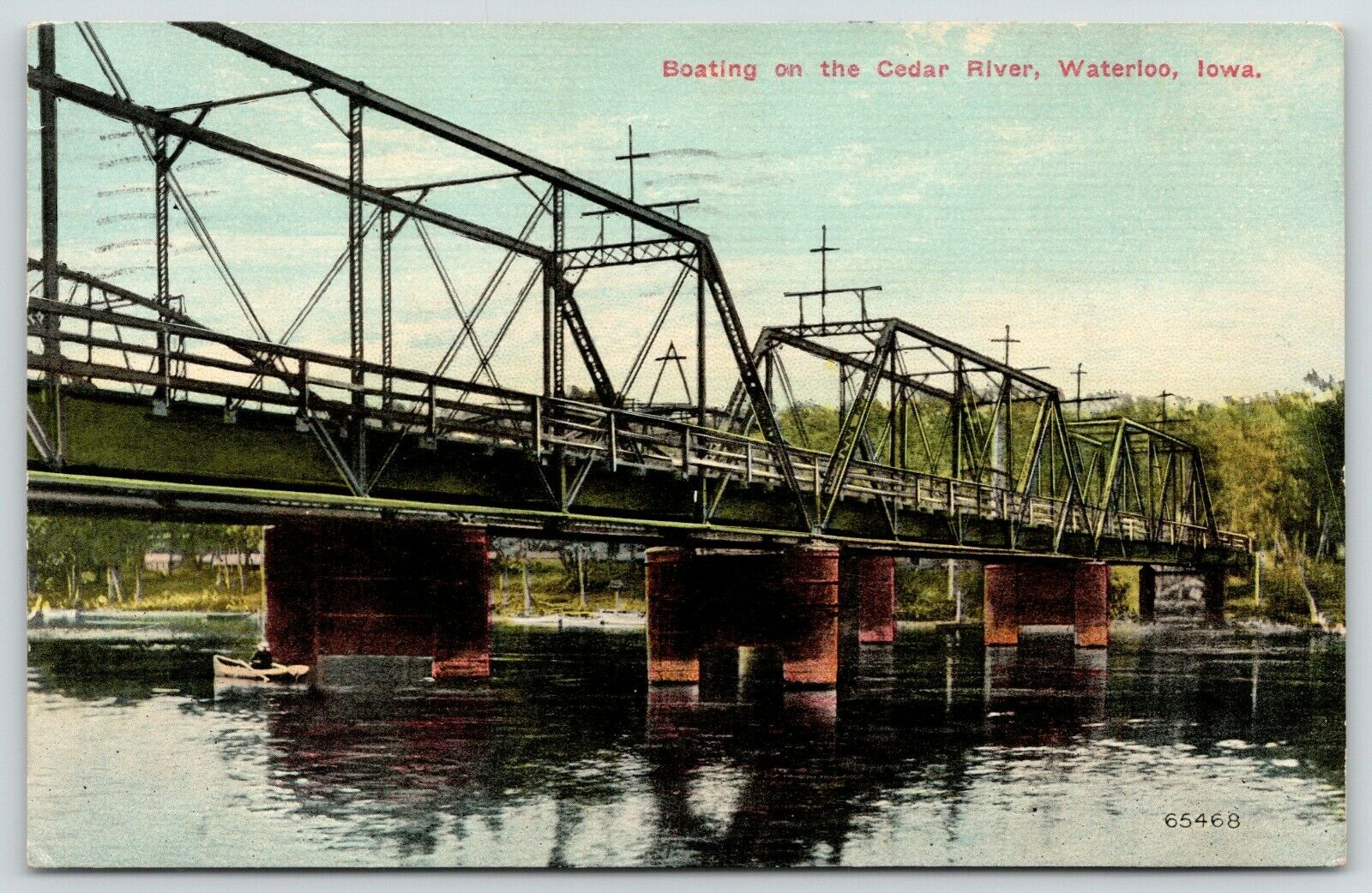 Waterloo Iowa~Cedar River Bridge~Multi-Span thru Truss~Rowboat Below~1911 PC