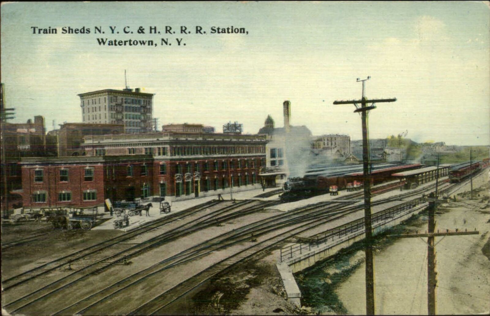 Watertown NY Train sheds RR Train Station c1910 Postcard