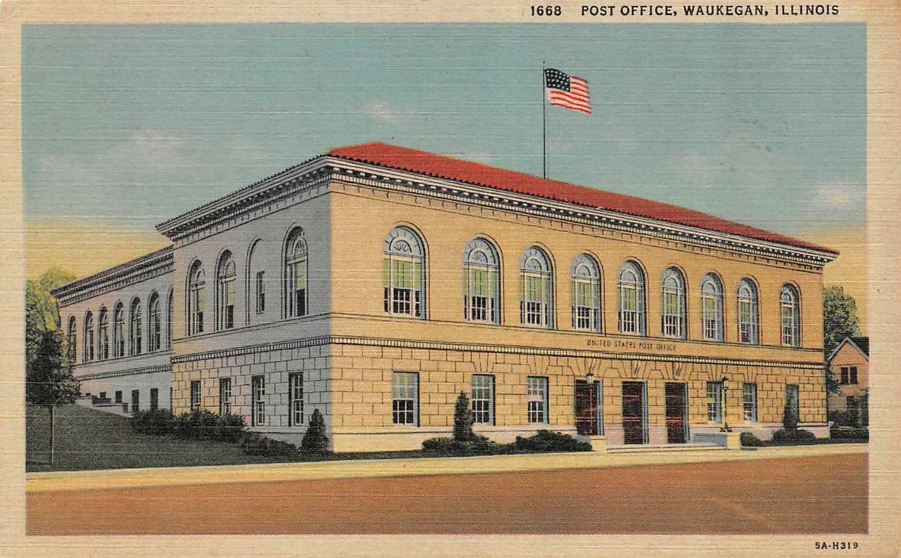 WAUKEGAN, IL Illinois POST OFFICE Lake County c1940's Linen Postcard