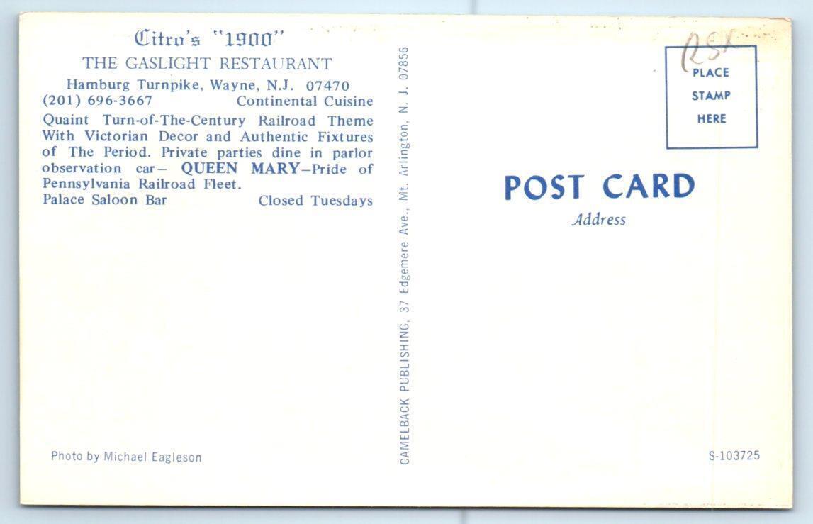 WAYNE, New Jersey NJ ~ Train CITRO'S 1900 GASLIGHT RESTUARANT Roadside Postcard