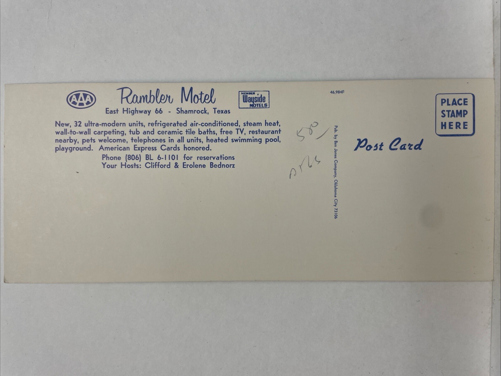 Wayside Rambler Motel Shamrock, Texas Oversize Postcard
