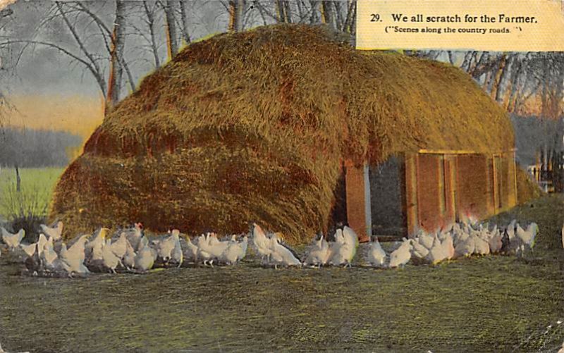 We all scratch for the Farmer Chicken Postcard Unused, Grade: 4, , Size: Regular size: Approx 3 1/2 X 5 1/2 inch (9 cm X 14 cm) Grading Scale: Grade 1 = Perfect corners Grade 2 = Very Minimal corner wear, no c ... Read More