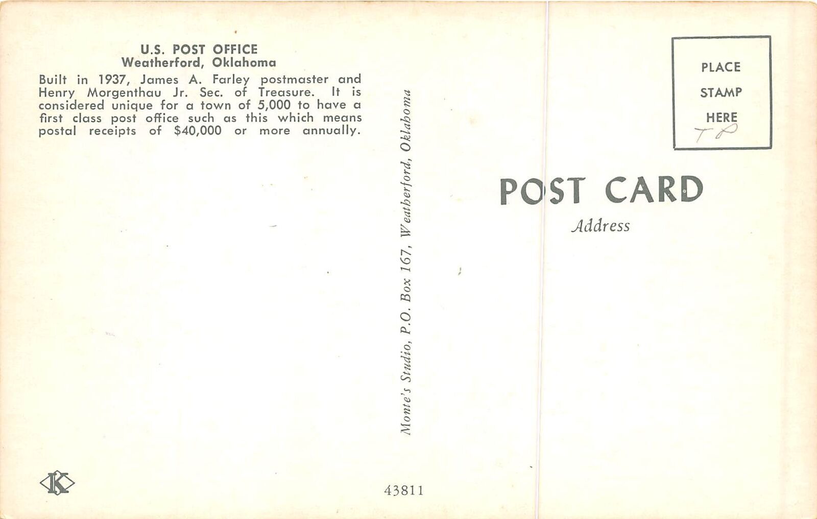 Weatherford Oklahoma 1960s Postcard US Post Office