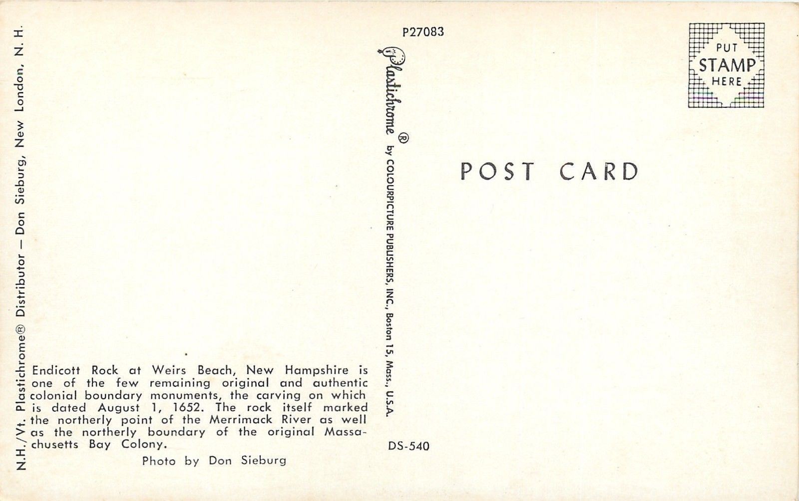 Weirs Beach New Hampshire~Endicott Rock Statue~1950s Postcard