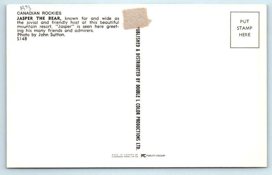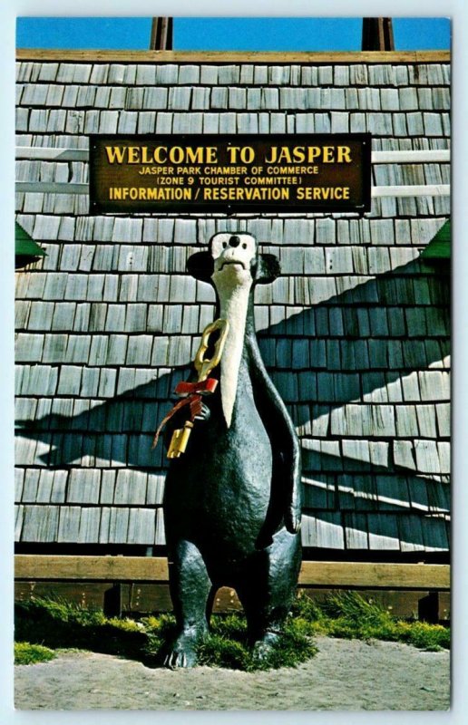 WELCOME to JASPER, Alberta Canada ~ JASPER THE BEAR Roadside 1978 Postcard