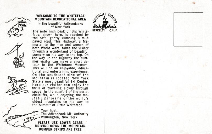 Welcome to Whiteface Mountain. Adirondack Mountains, New York. Standard sized chrome card. Very good condition.