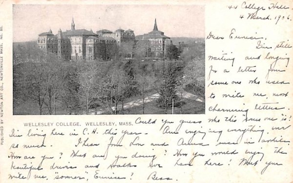 Wellesley College Massachusetts Postcard Wellesley MA Year date of postcard, or postal used / year used: 1906 Grade: 2 Size: R Wellesley College in Wellesley, Massachusetts vintage postcard from our collectio ... Read More