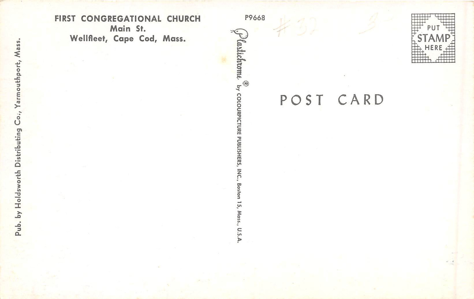 Wellfleet Cape Cod Massachusetts 1950s Postcard First Congregational Church