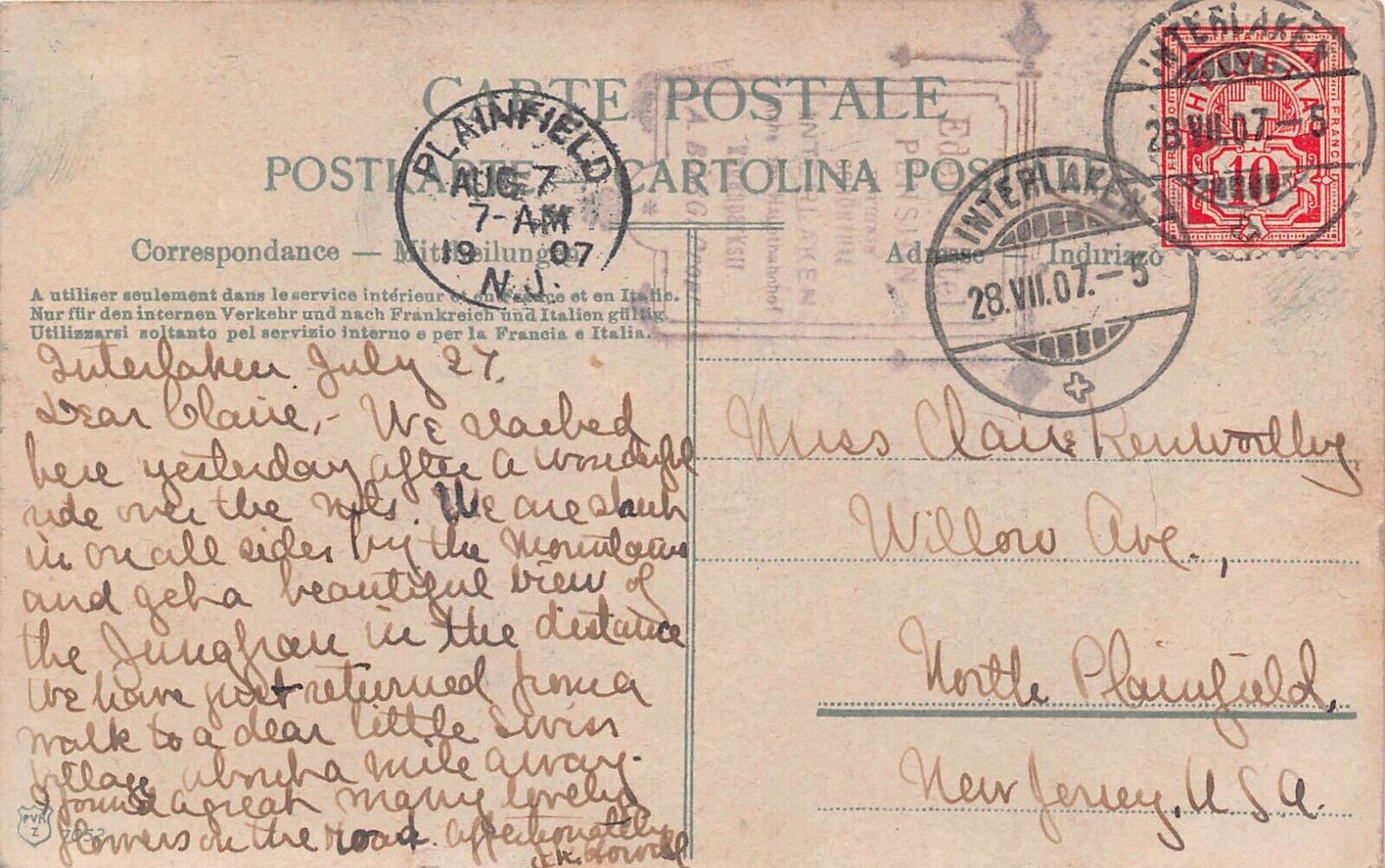 WENGERNALP mit EIGERE und MONCH SWITZERLAND 1907 POSTCARD