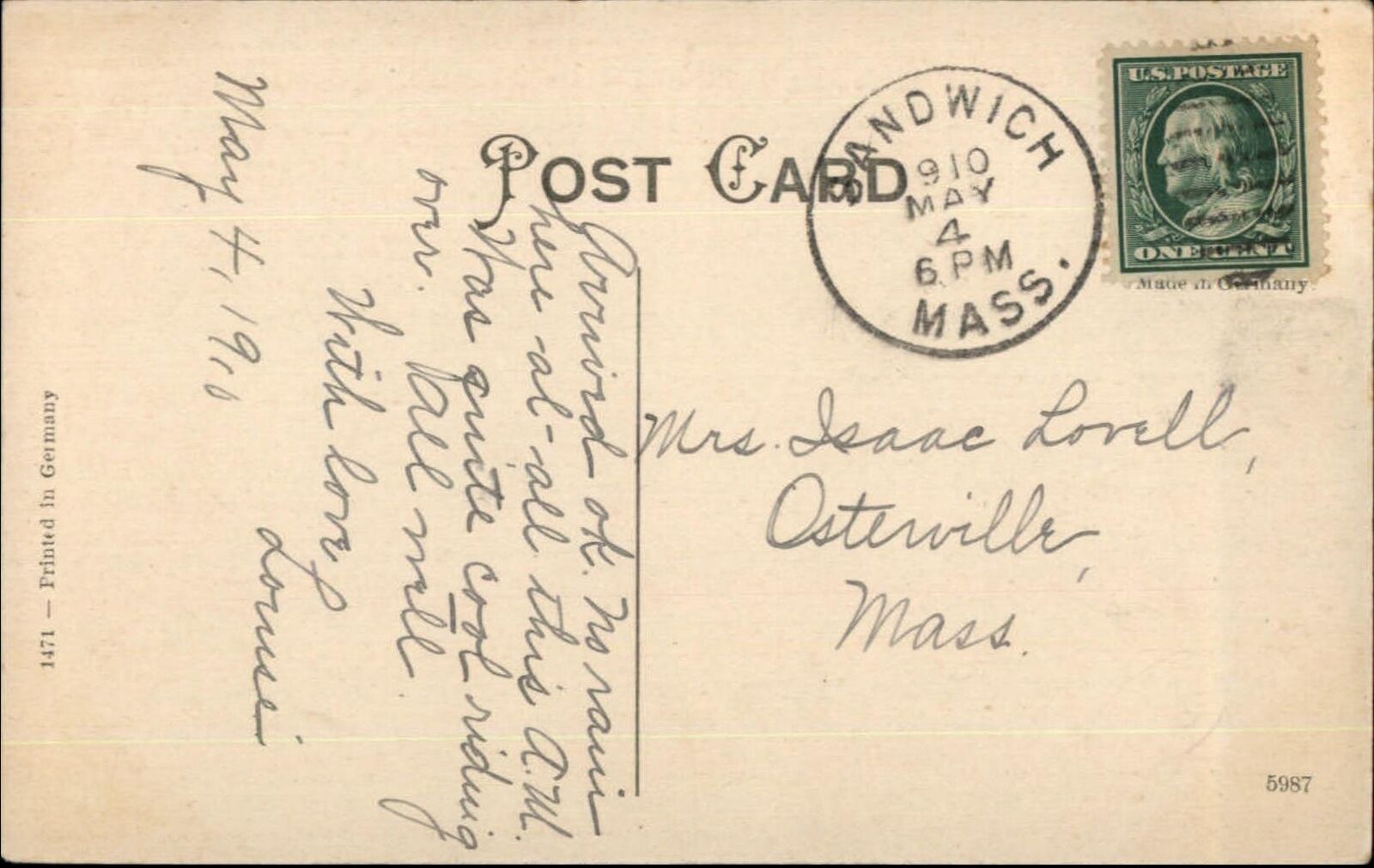 West Barnstable Cape Cod MA Center St. c1910 Postcard