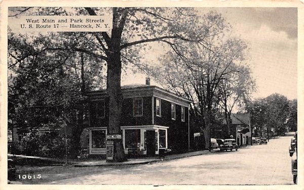 West Main & Park Streets in Hancock, New York vintage postcard from our collection of over 2 Million old antique post cards of US States, Cities and Town Views. US Route 17.