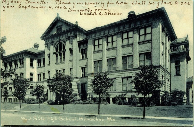 West Side High School Milwaukee Wisconsin Postcard Rotograph We have many more wonderful and unique postcards, along with other paper ephemera. Take a look at our store to see more treasures. Postcards are packaged in a plastic sleeve and mailed in a cardboard or thick paper mailer. ----------------We do have a dog who sometimes contributes a hair or two to the cause. But he generally does not collect postcards and is looking for love in all the right places.