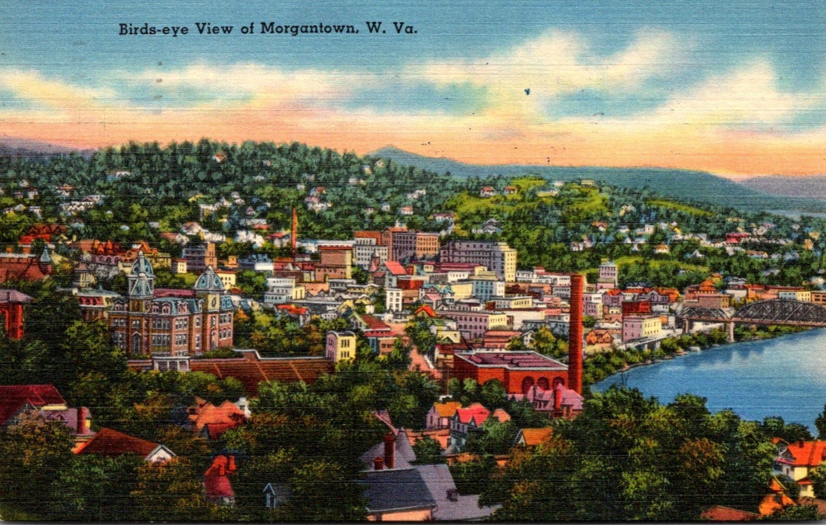 West Virginia Morgantown Birds Eye View 1956