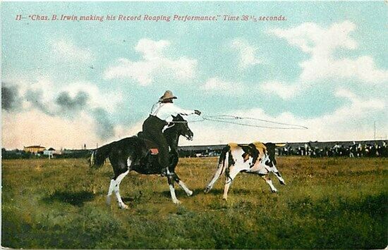 Western, Chas B. Irwin Making Record Roping Performance Early Printed Postcard