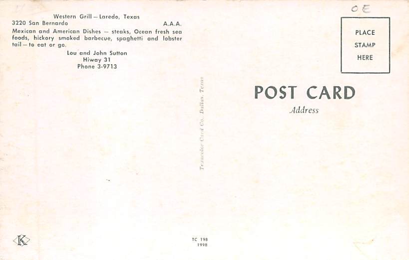 Western Grill - Laredo, Texas TX Postcard - View Images