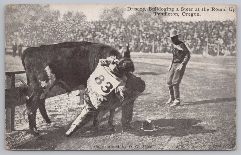 Western~Driscoe~Bulldogging Steer @ Round-Up~Pendleton Oregon~Vintage Postcard