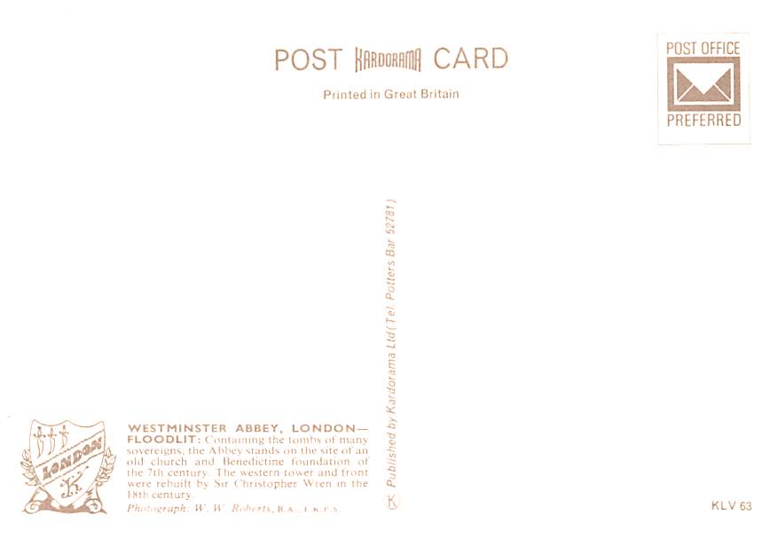 Westminster Abbey - London Continental Size Postcard, Approx 4 in x 6 in (10 cm x 15.25 cm) Continental Size: 4X6 inches (10.5 cm x 15 cm)